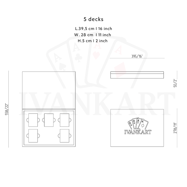 No two pieces are the same. Whether for 2, 5, or 6 decks, it’s a refined, original gift for any card aficionado. Order now and deliver pure delight!