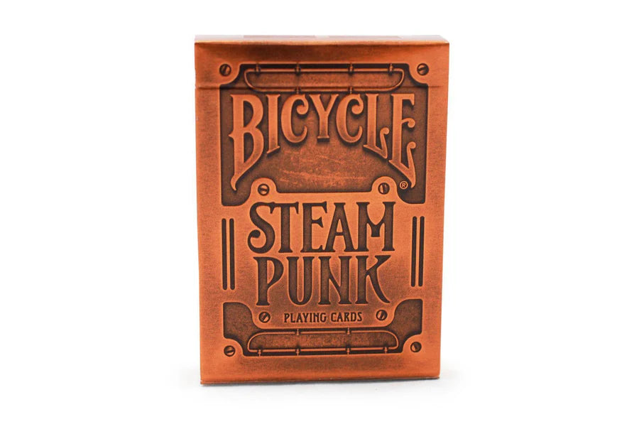 Step into a world where steam powers the impossible. The Bicycle Gold Steampunk Playing Cards fuse industrial grit with golden elegance — a stunning tribute to the retro-futuristic aesthetic of the steampunk genre.