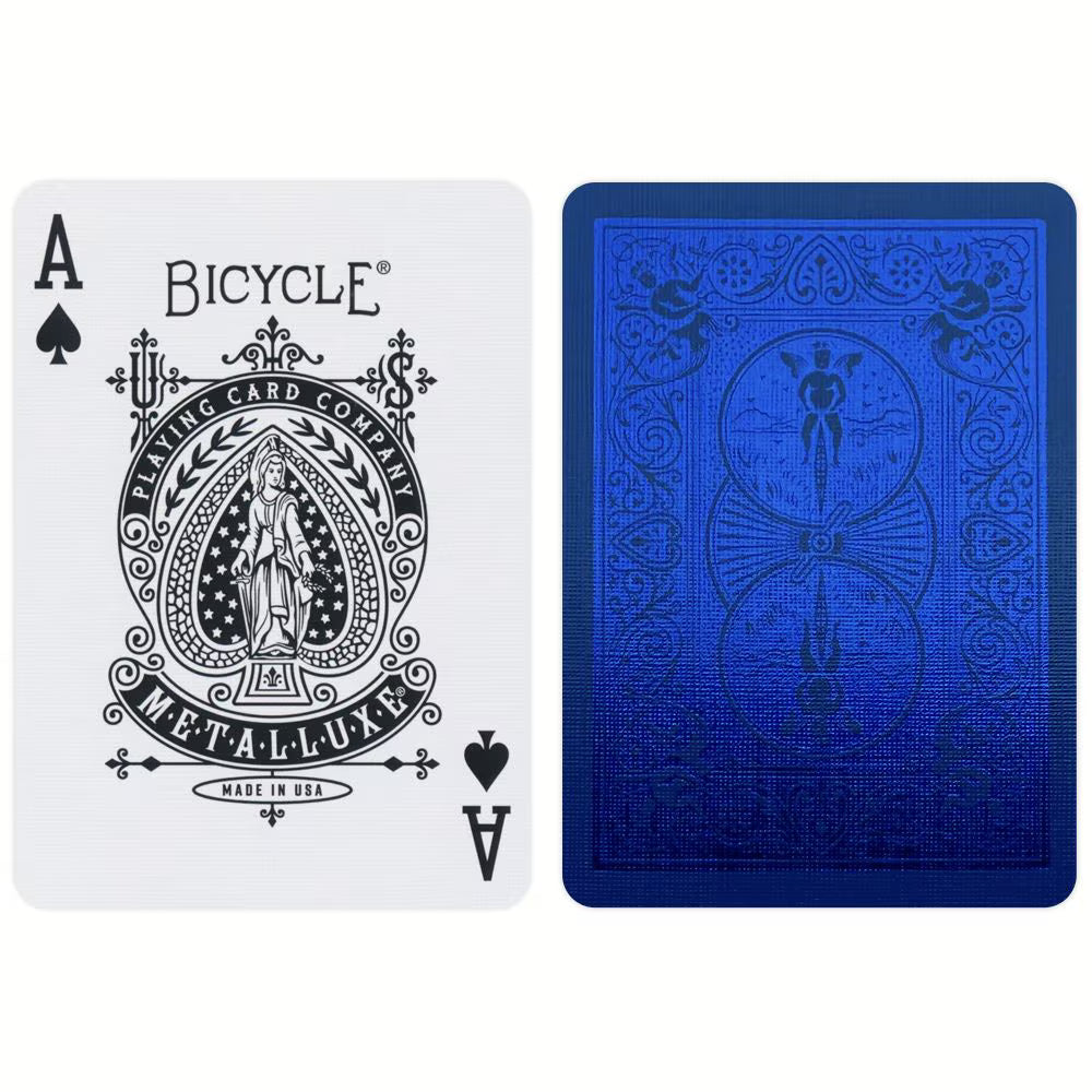The Bicycle Metalluxe Blue 2023 deck is a brilliant fusion of classic card design and premium metallic elegance. Featuring real blue foil on the card backs using Metalluxe technology, this limited-edition release offers durability, shine, and prestige — all in one hand.