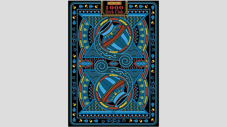 The tuck box boasts rich turquoise and obsidian hues, adorned with tribal motifs and symbolic glyphs. Each face card is a miniature masterpiece, showcasing stylized masks, warriors, and deities inspired by Aztec mythology.