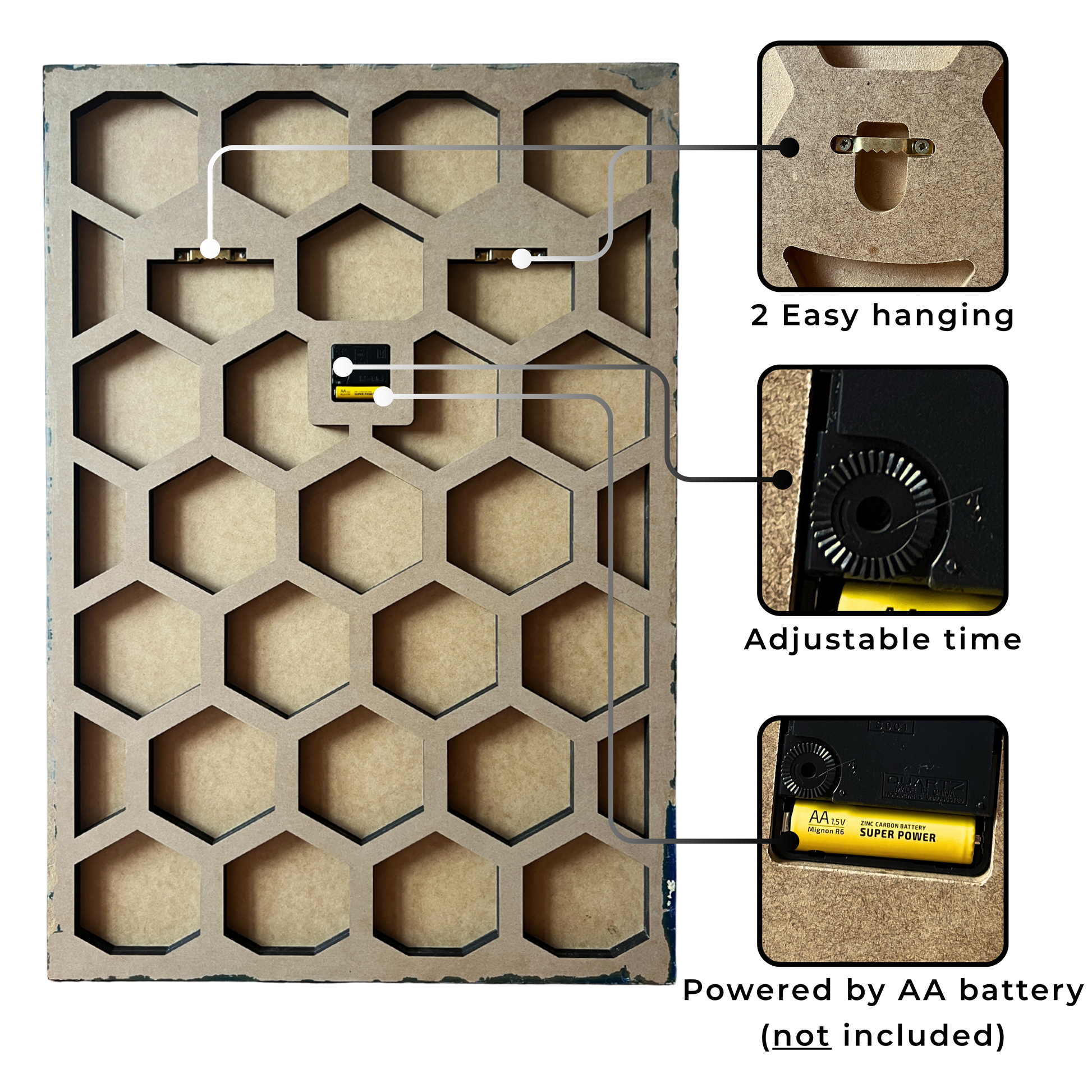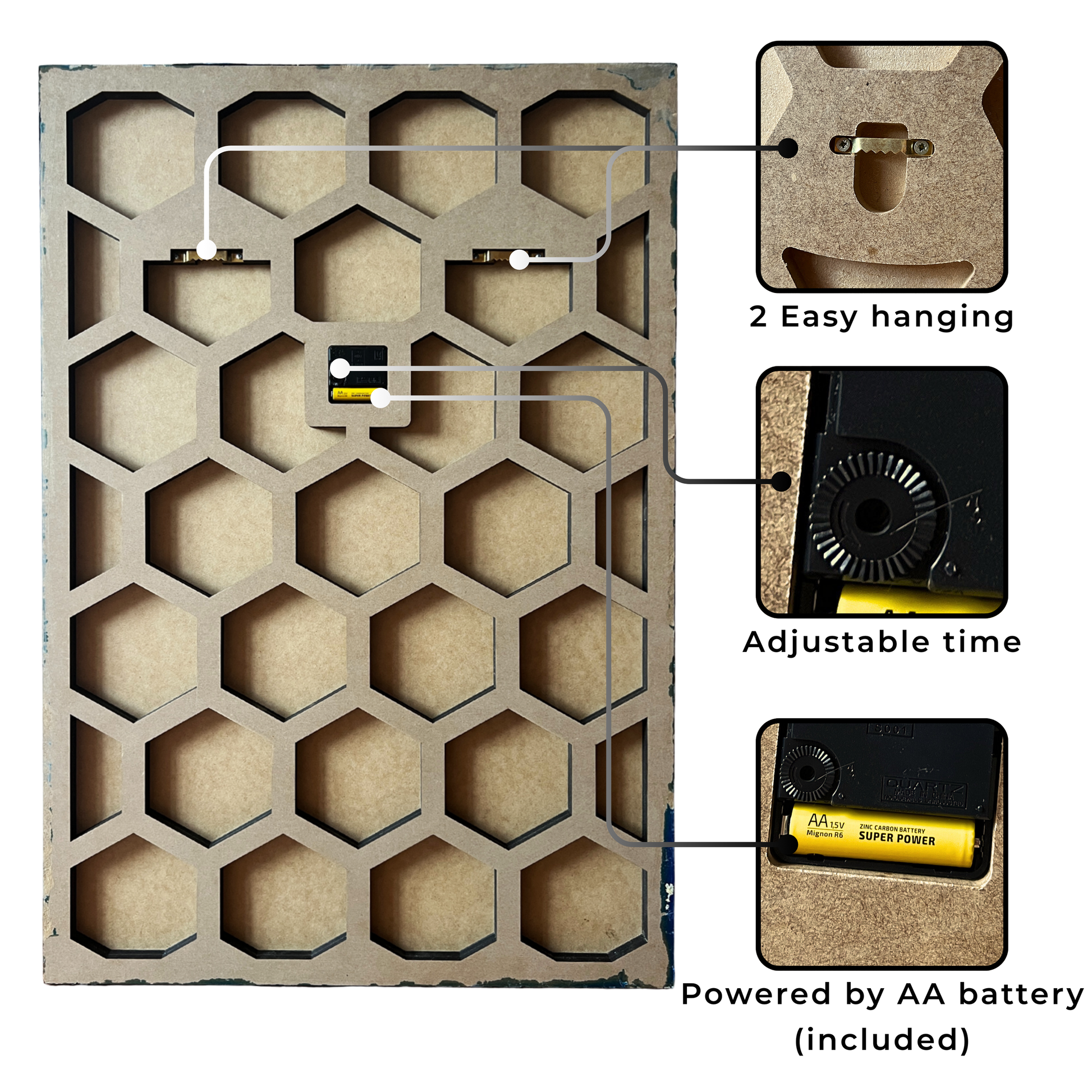 MOUNTING: There is a metal loop on the back panel for hanging the clock on the wall. hanging hardware not included (use a standard nail/screw).