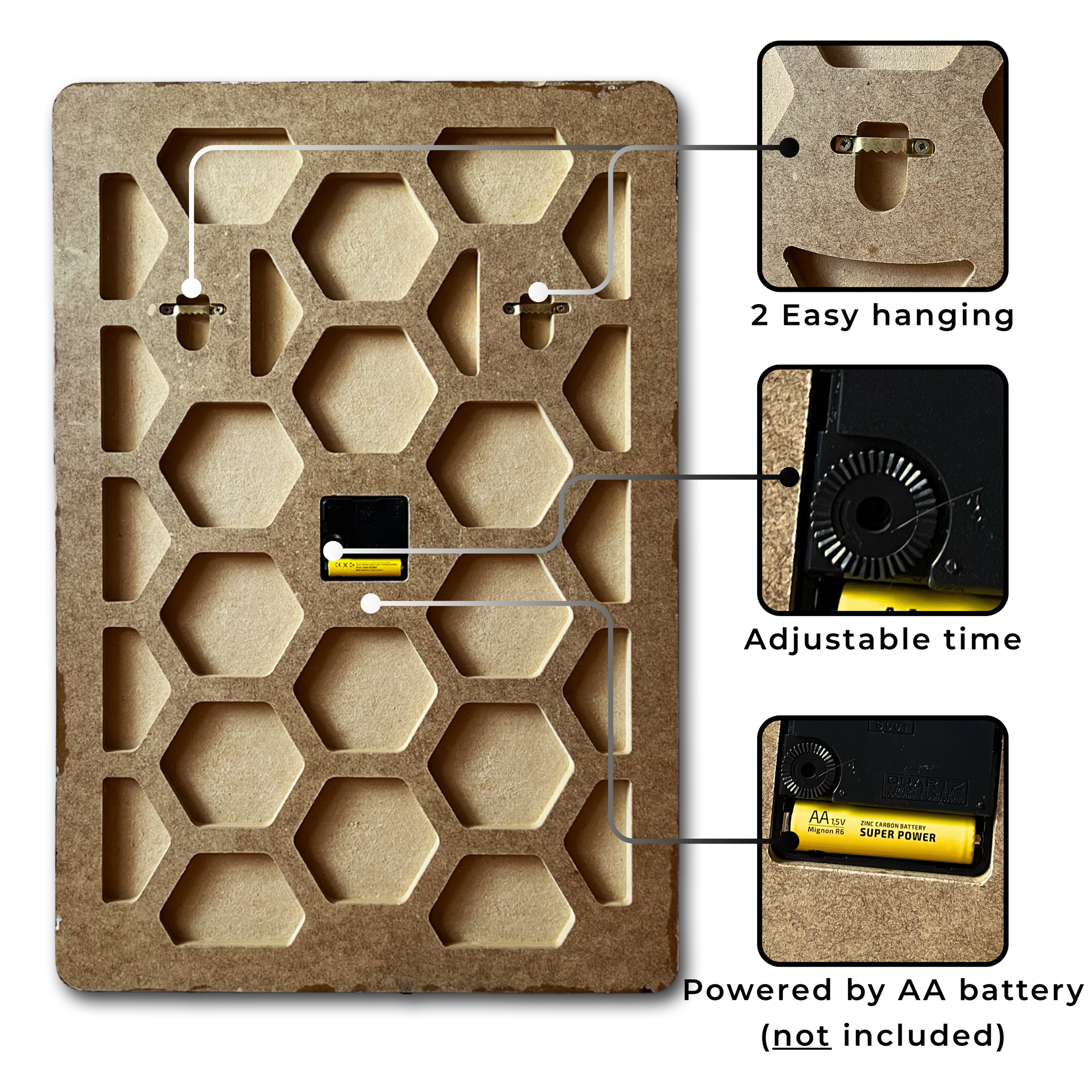MOUNTING: There is a metal loop on the back panel for hanging the clock on the wall. hanging hardware not included (use a standard nail/screw).