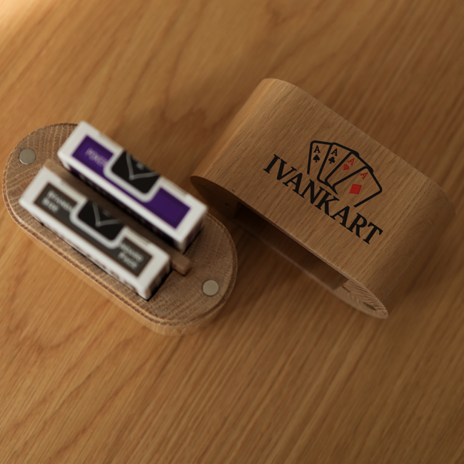 Double-Deck Card Organizer in Oak — Handcrafted by Ivankart.