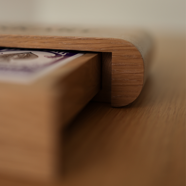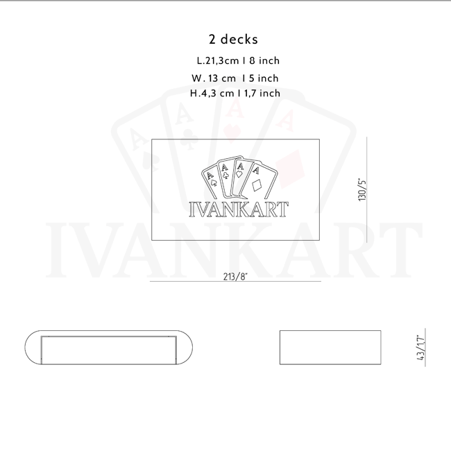 A compact, hand-crafted case that feels made for the hand. The Ivankart Duo Slide Case is milled from solid oak with rounded edges, a front-slide tray for two decks. Inside, a wooden divider keeps decks aligned; below, a subtle finger cutout makes opening effortless. Perfect for daily carry, table setup, or a distinctive gift.